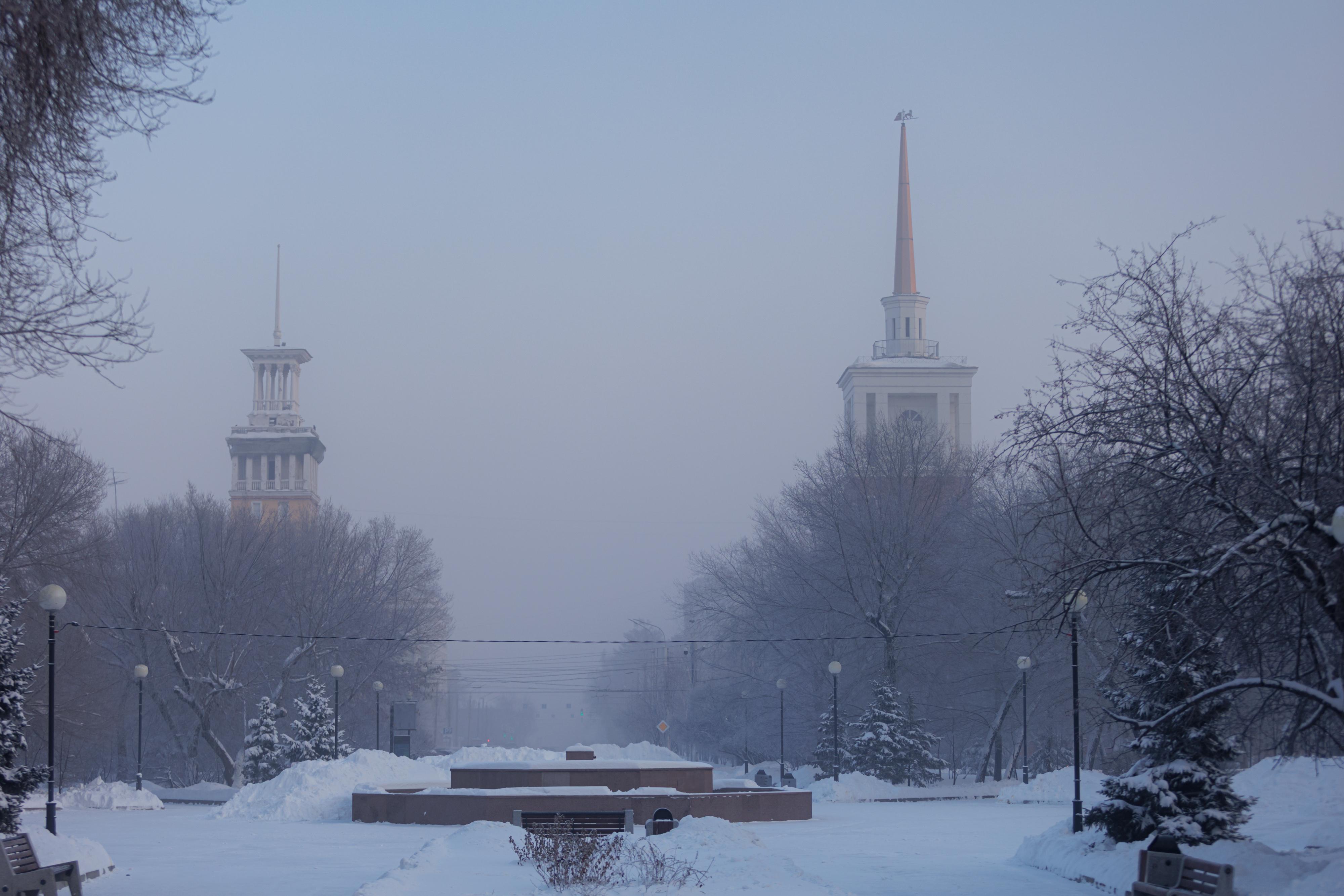 Центральные районы Красноярска во время действия режима неблагоприятных метеоусловий