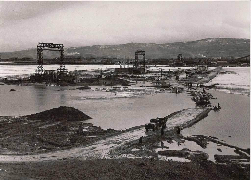 Обнаружены архивные фотографии, запечатлевшие этапы возведения Коммунального моста через Енисей. На снимках видно, как менялась жизнь вокруг этой переправы.
