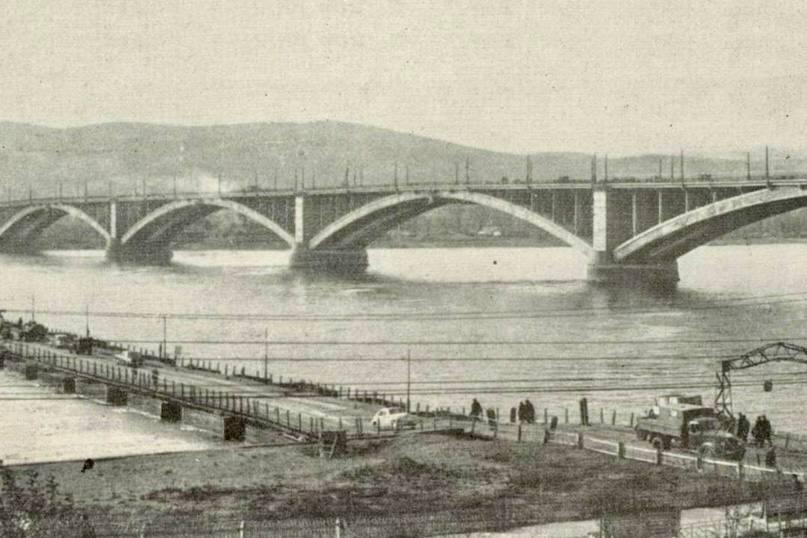 В телеграм-канале «Красноярск Исторический» приводят описание одного из снимков: «Два моста, 1959 год. Понтонный мост и строящийся Коммунальный. Абаканская протока, фото сделано с правого берега».