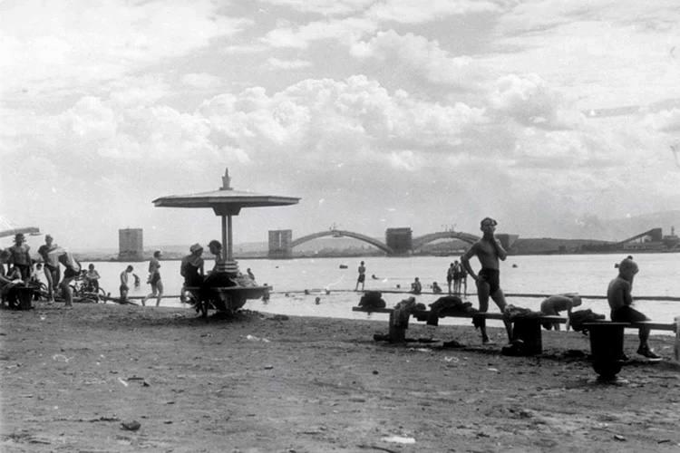 Рядом со стройплощадкой кипела обычная городская жизнь. На левобережной набережной Енисея в то время располагался популярный пляж, где красноярцы купались и загорали.