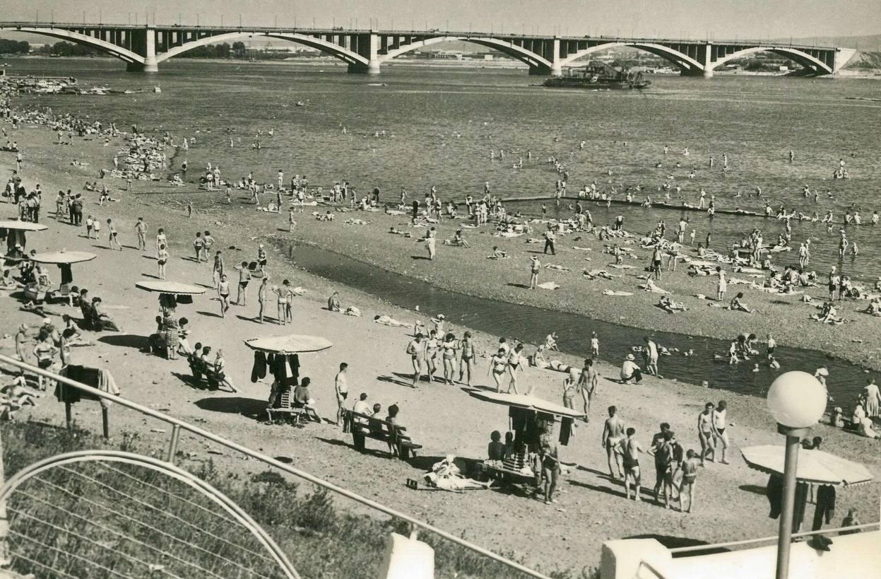 1965 год: вид на пляж на левом берегу Енисея