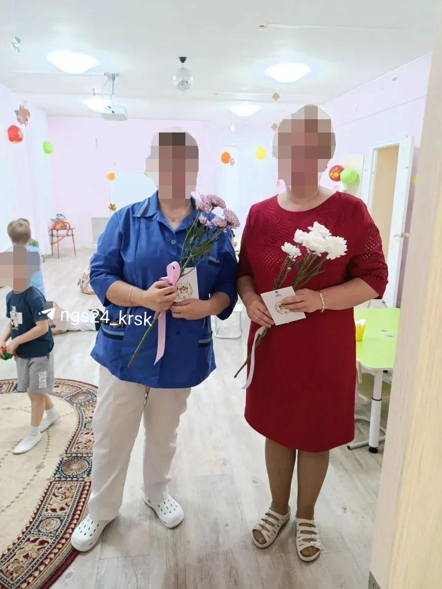 На снимке слева в синем — младший воспитатель, обвиняемый в избиении ребёнка. Справа в красном — воспитатель, отказавшаяся комментировать ситуацию вне рабочего времени