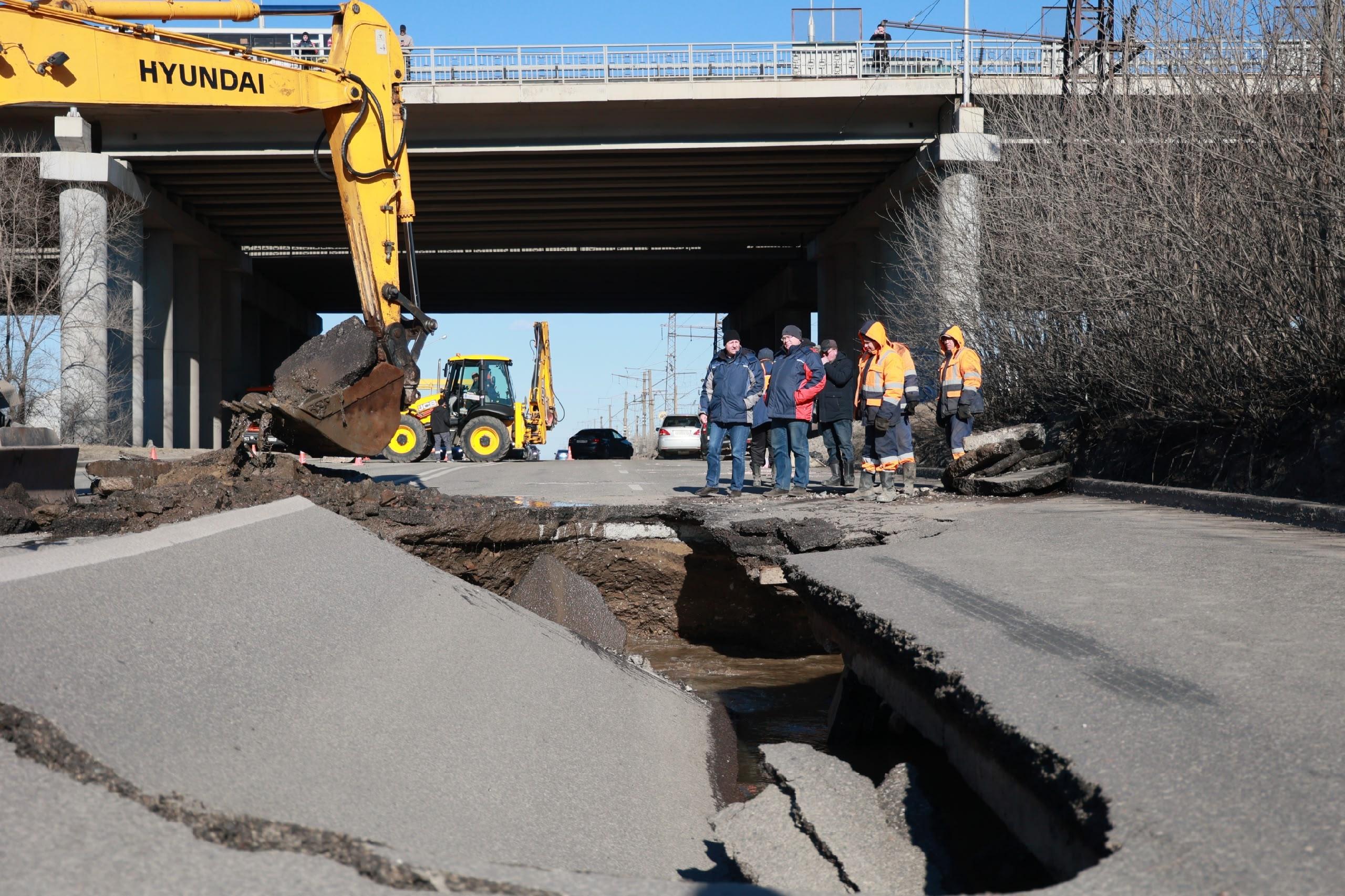 Семафорную перекрыли из-за провала асфальта