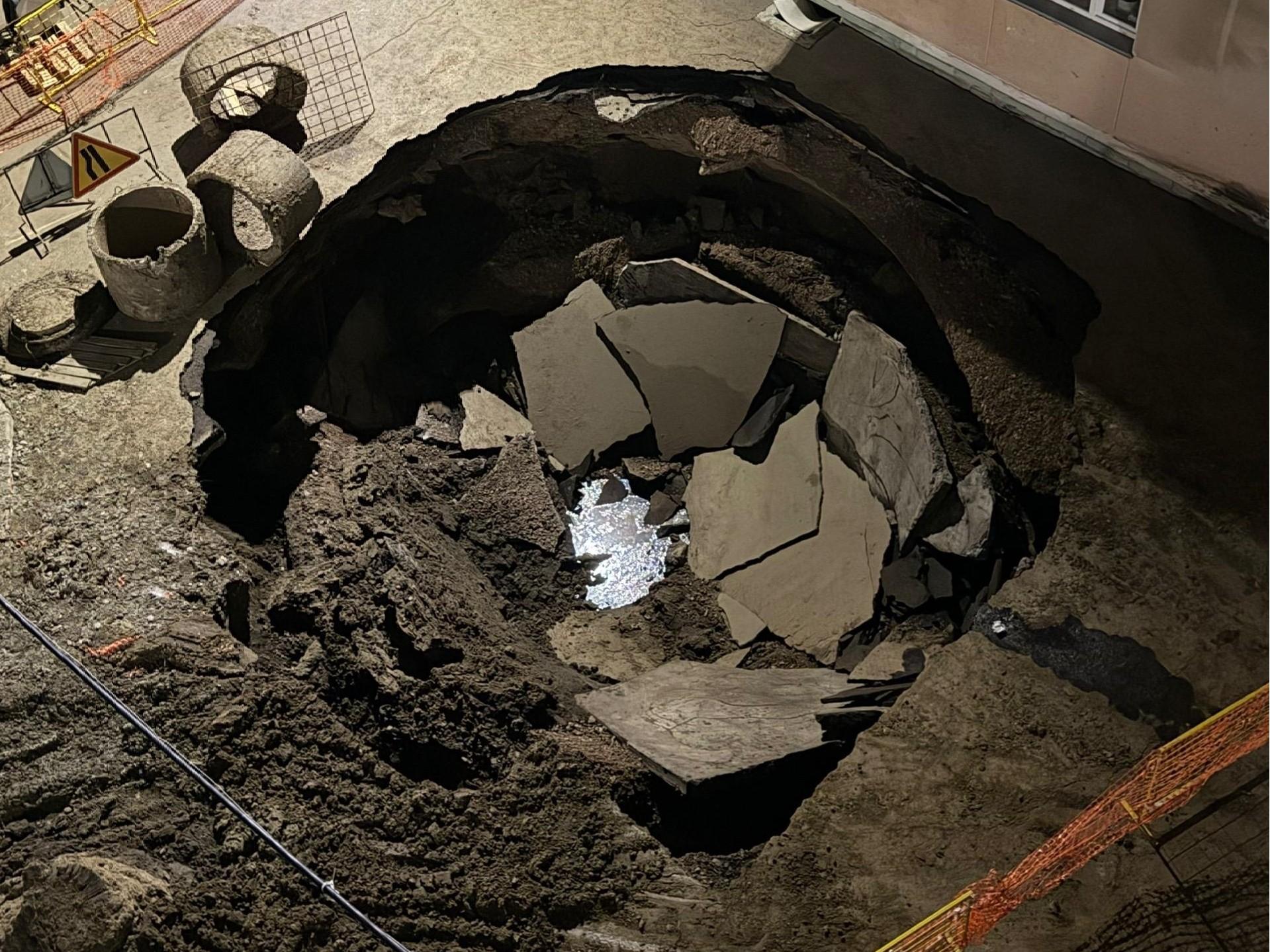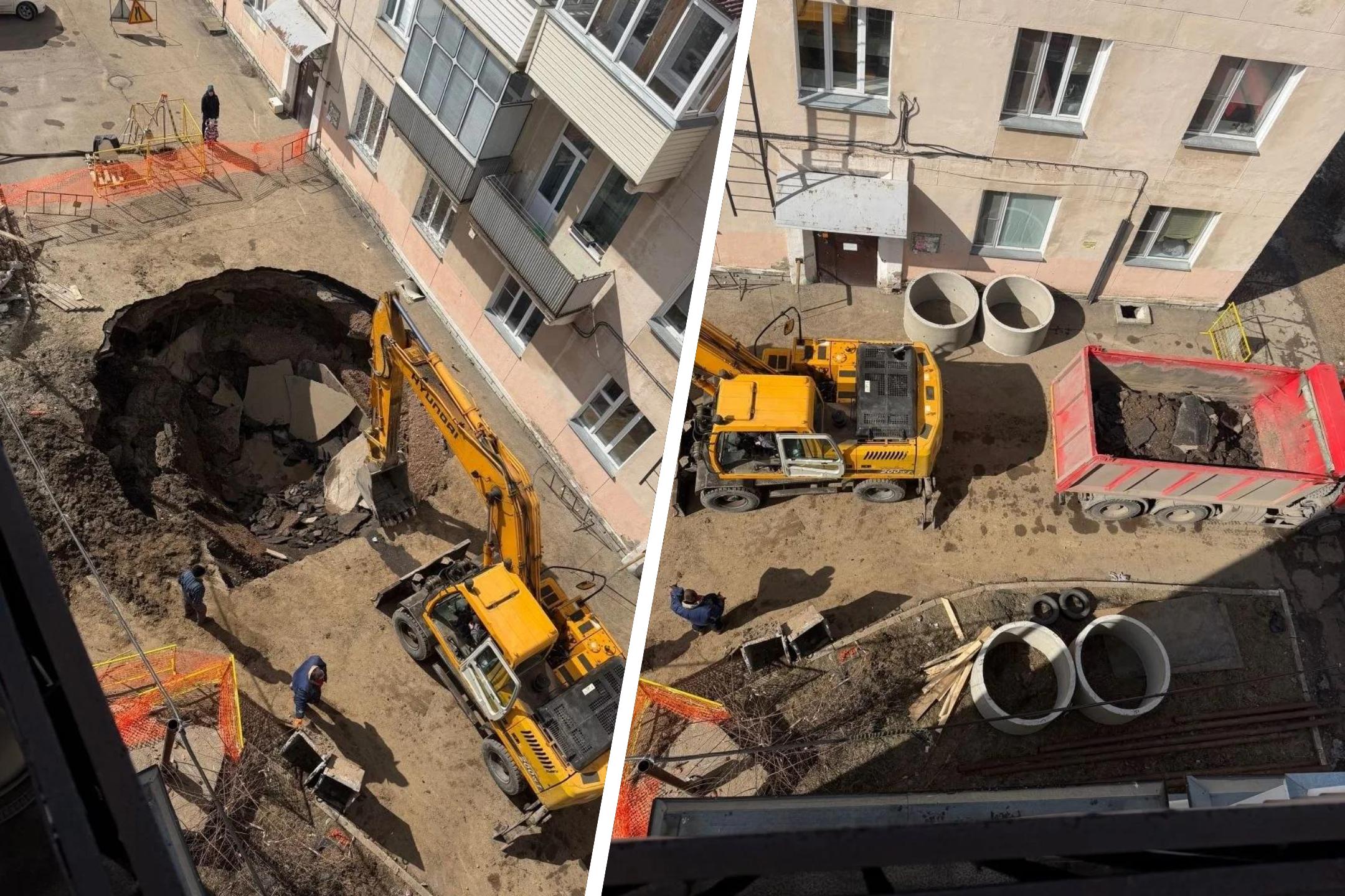 26 марта ЕДДС Железногорска предупредила жителей о предстоящих работах на канализационной сети и попросила не парковать автомобили в зоне проведения работ. Четыре дня спустя грунт обвалился.