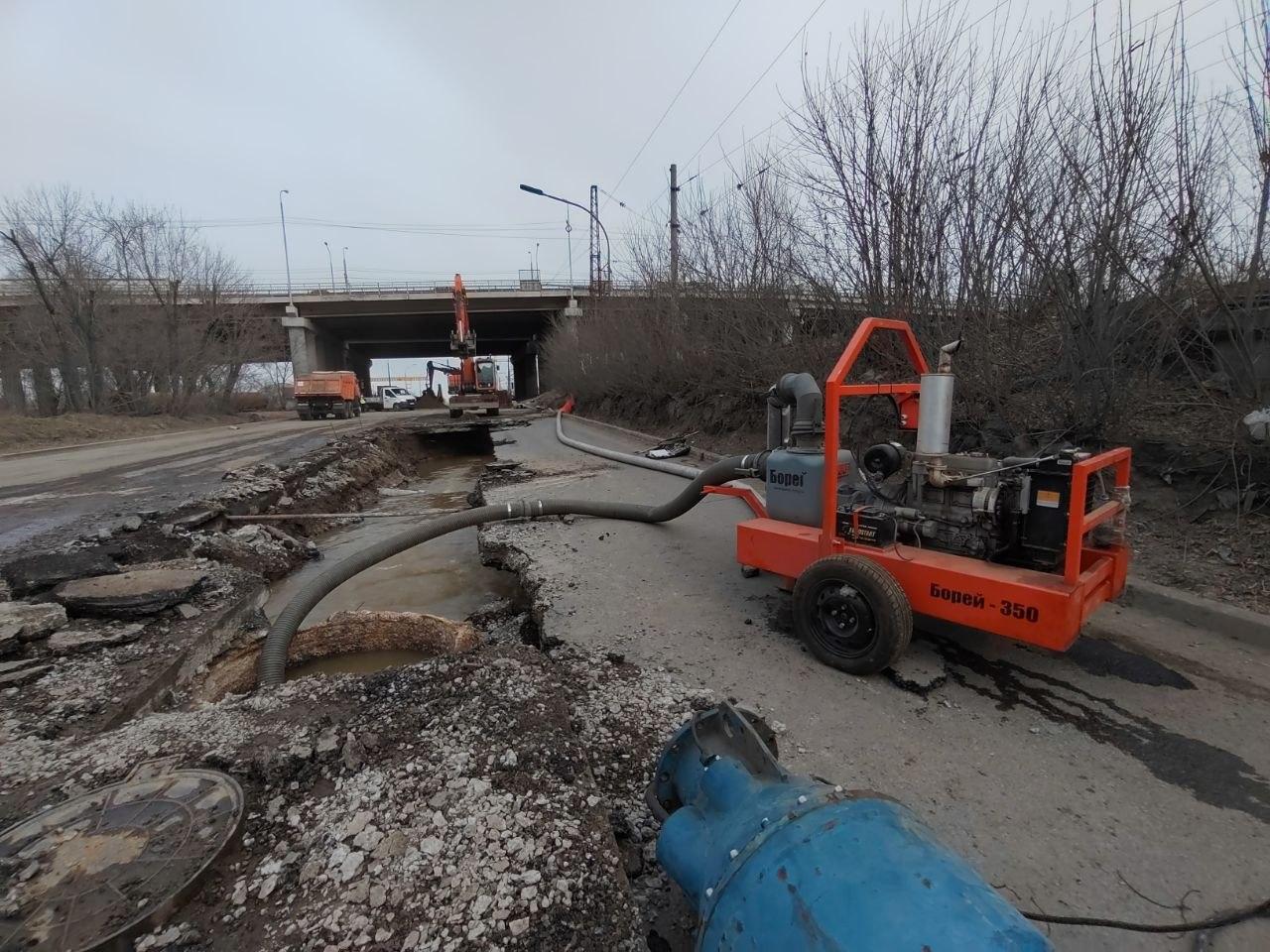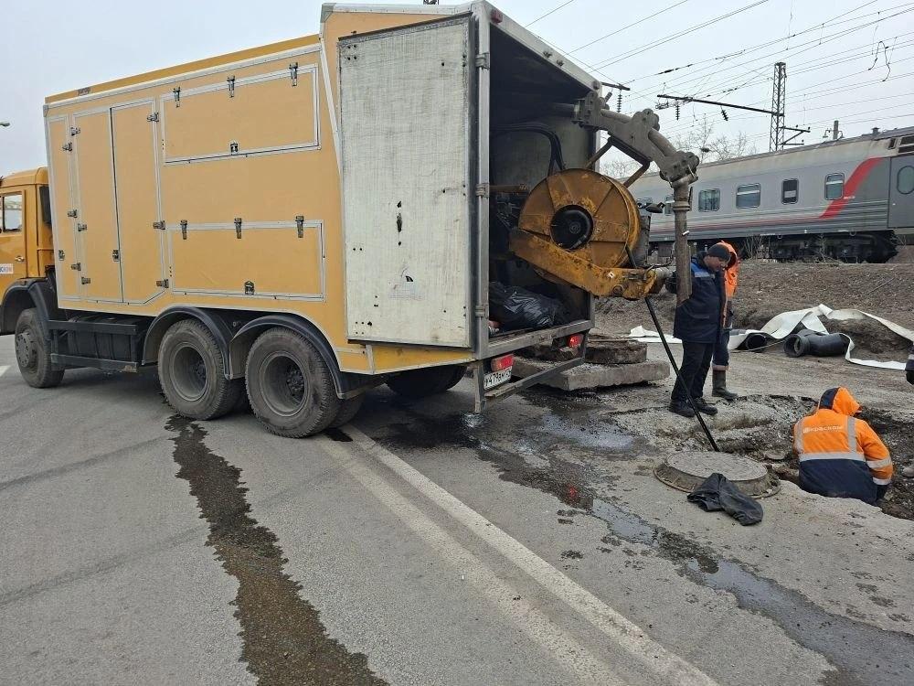Для снижения уровня стоков используется мощный насос, предоставленный Специализированным автотранспортным предприятием. Параллельно слесари очищают трубопровод от гравия и твердого бытового мусора, который попадает в канализацию. Всего в работах задействованы 15 единиц коммунальной техники и 20 профильных специалистов.