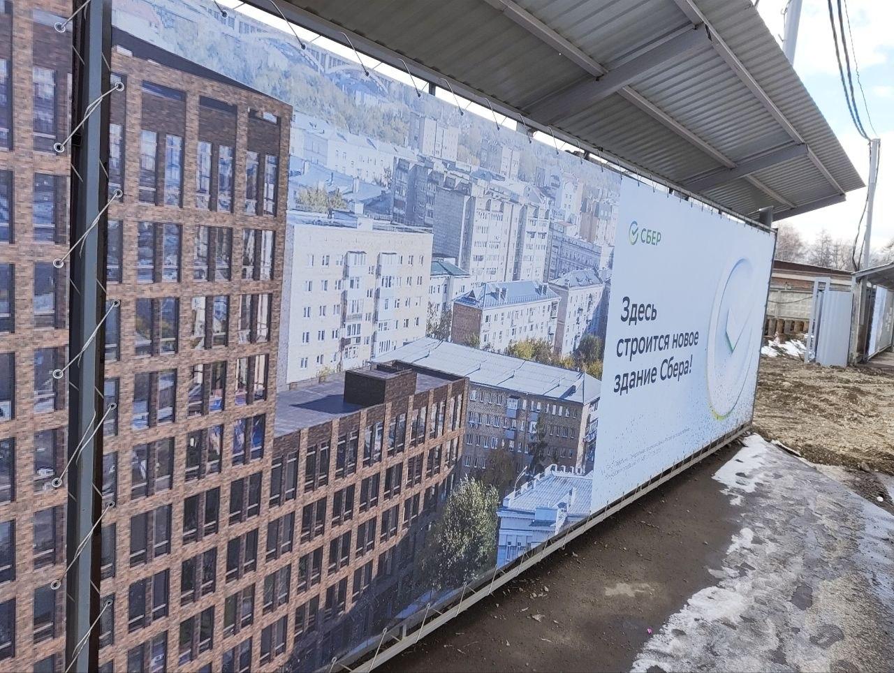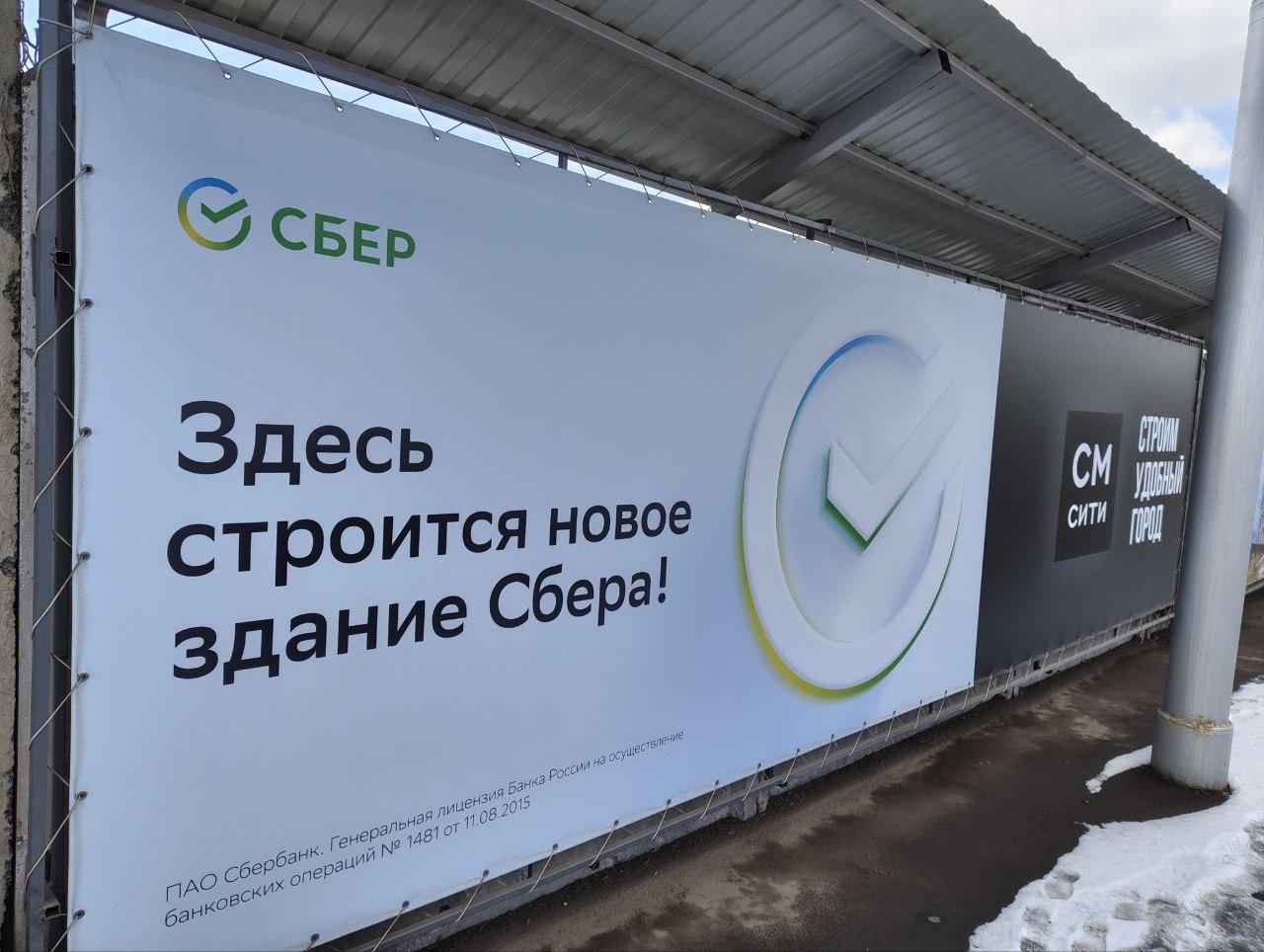 На строительной площадке установили баннеры, указывающие на будущего арендатора — головное отделение Сбера. В пресс-службе банка эту информацию подтвердили.