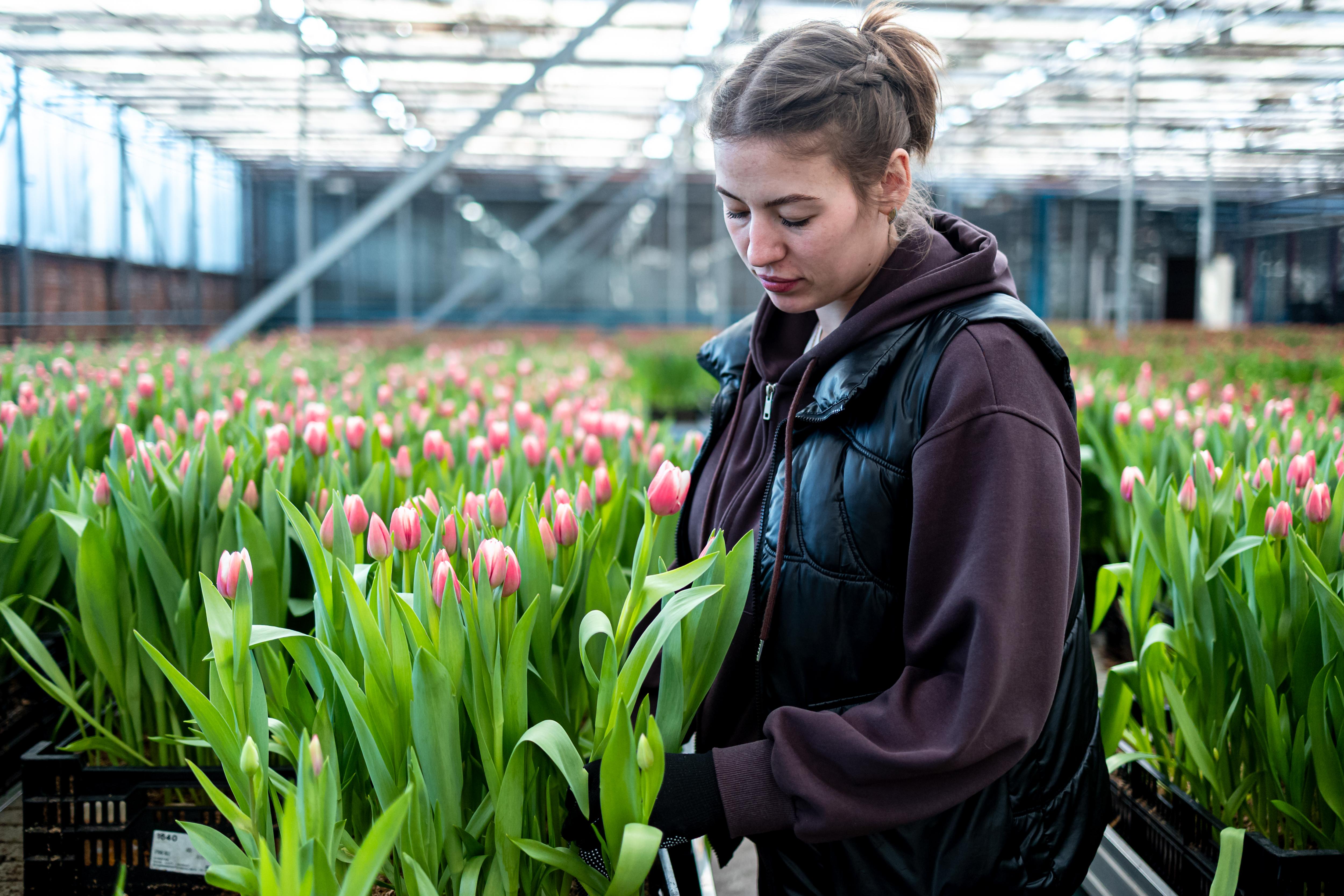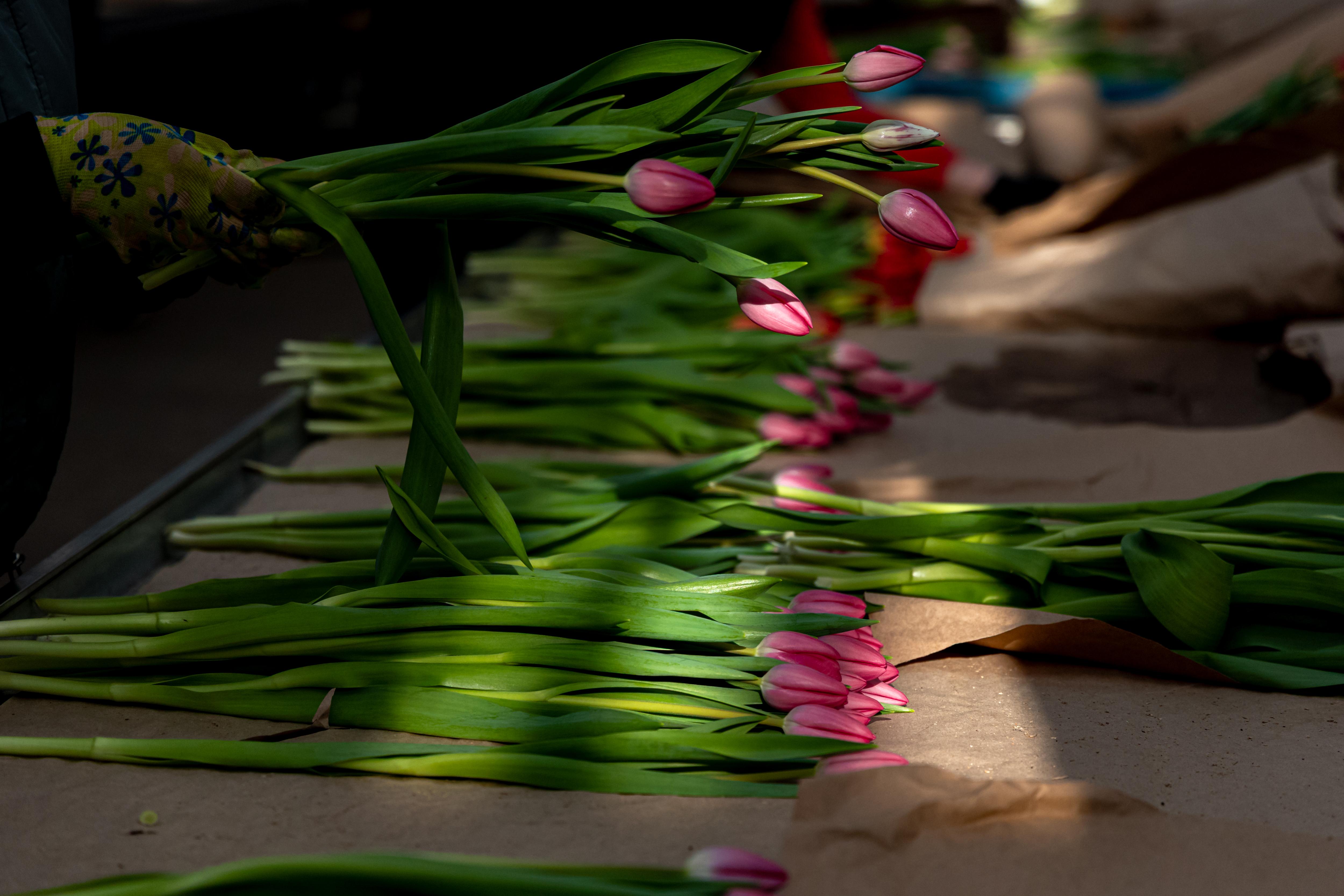 Срезанные тюльпаны готовят для букетов