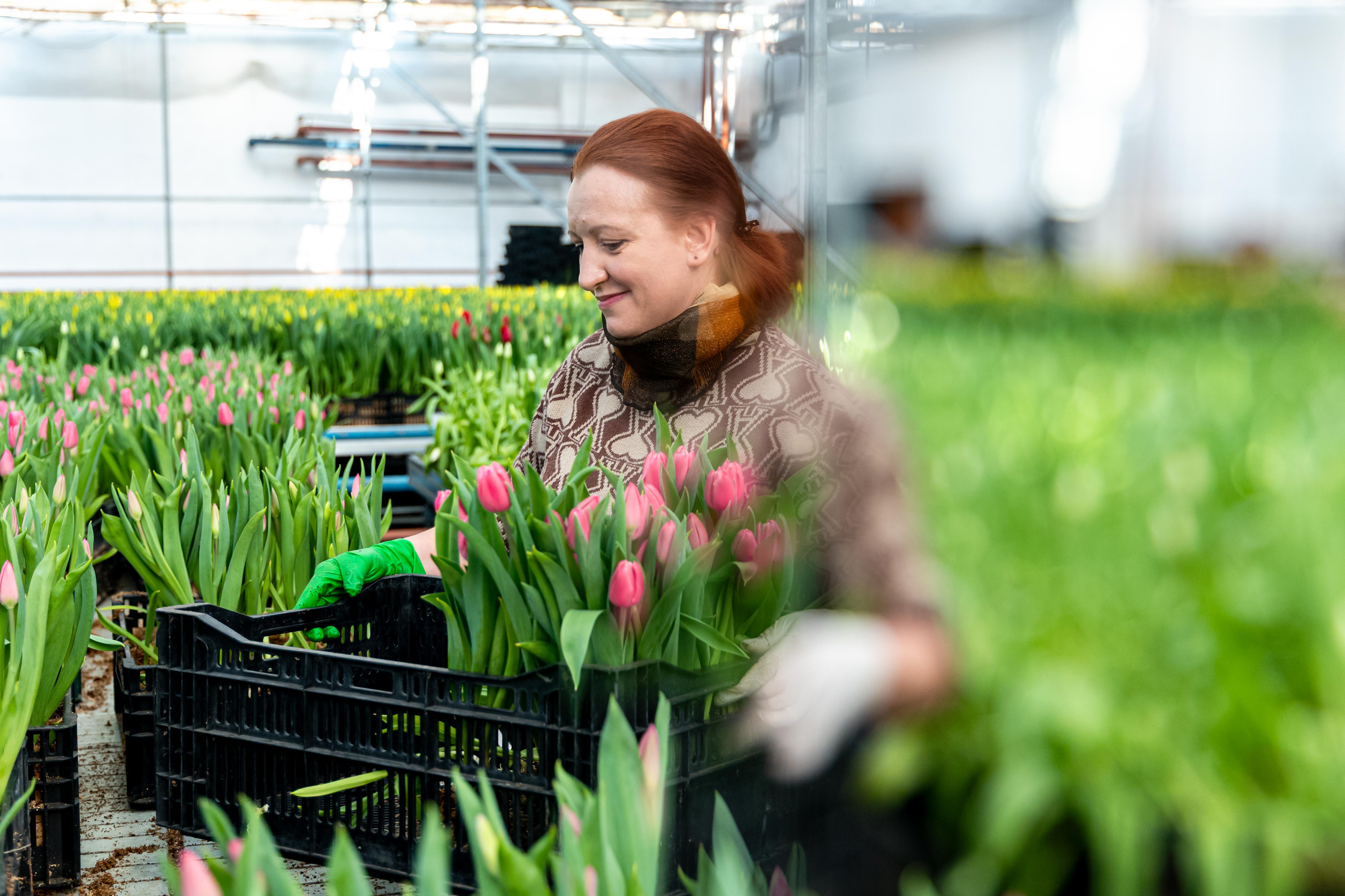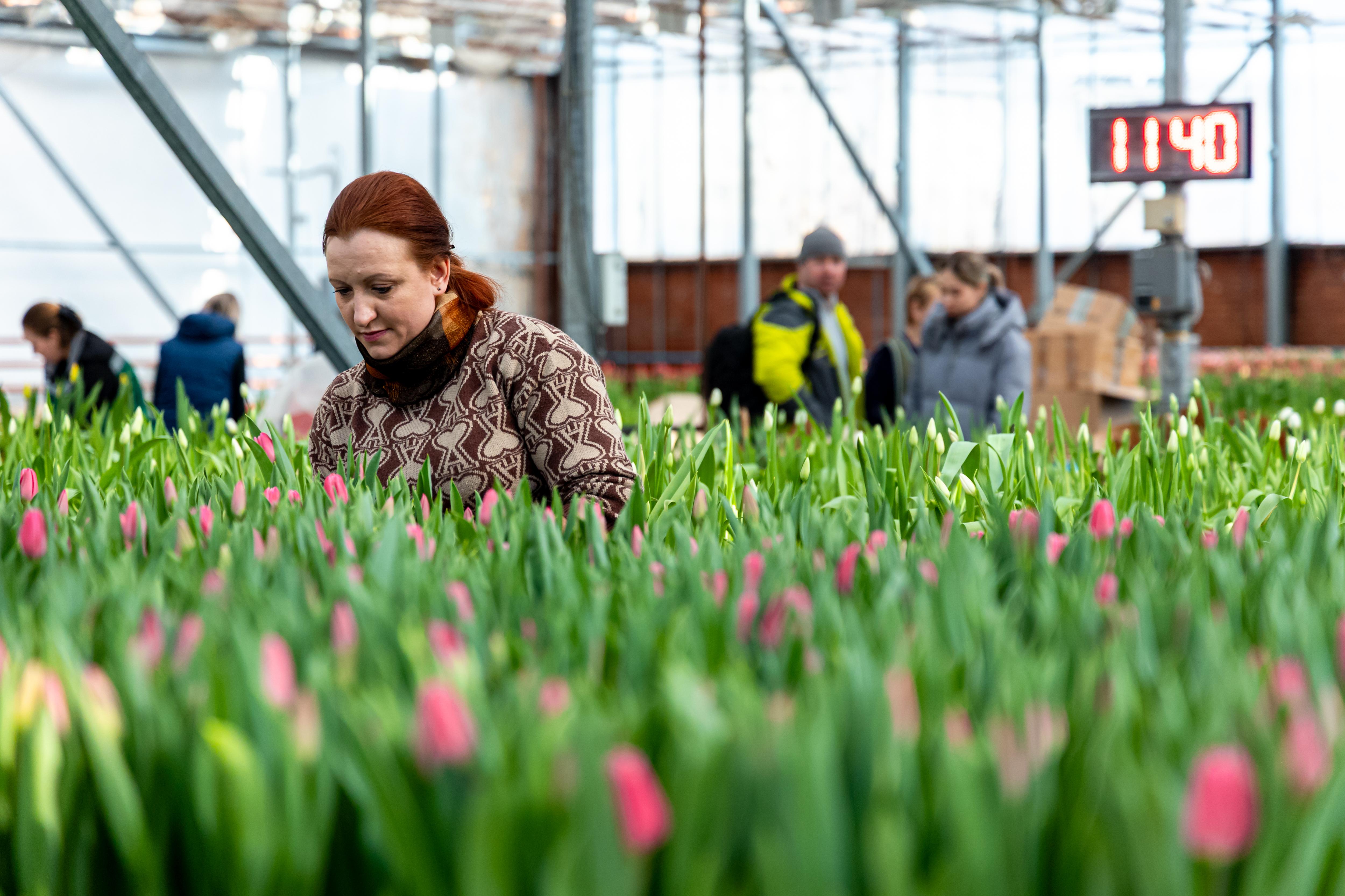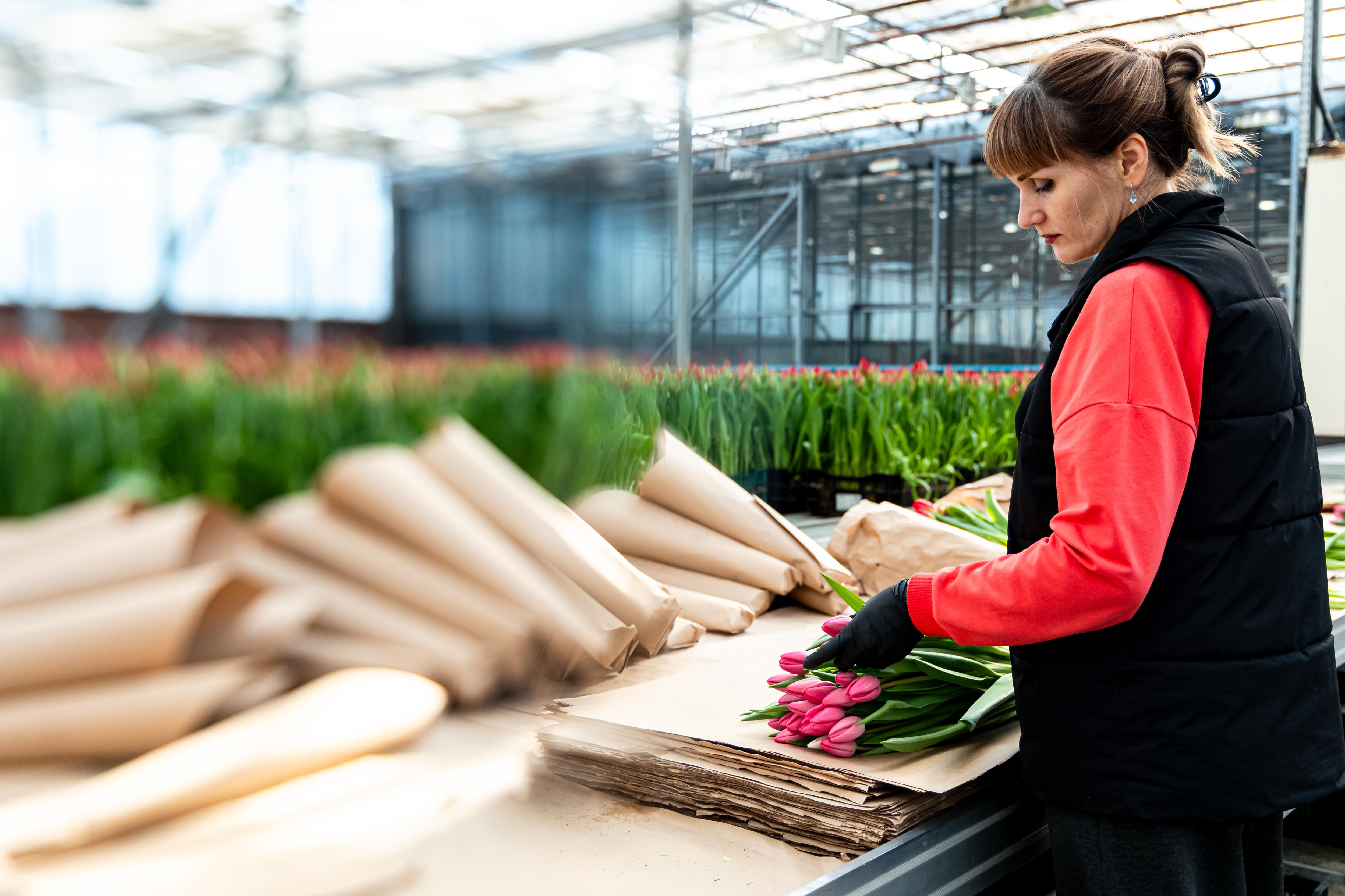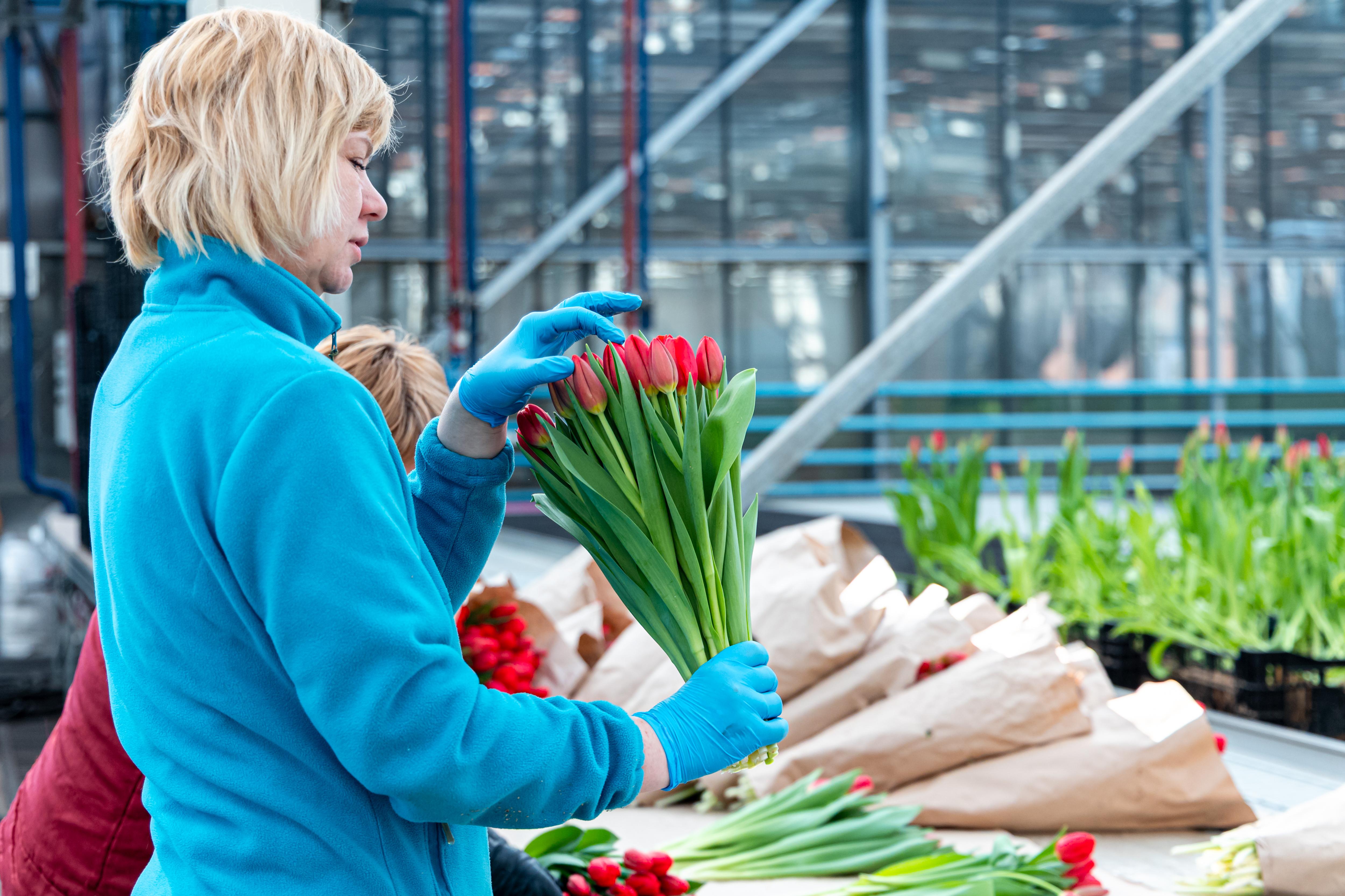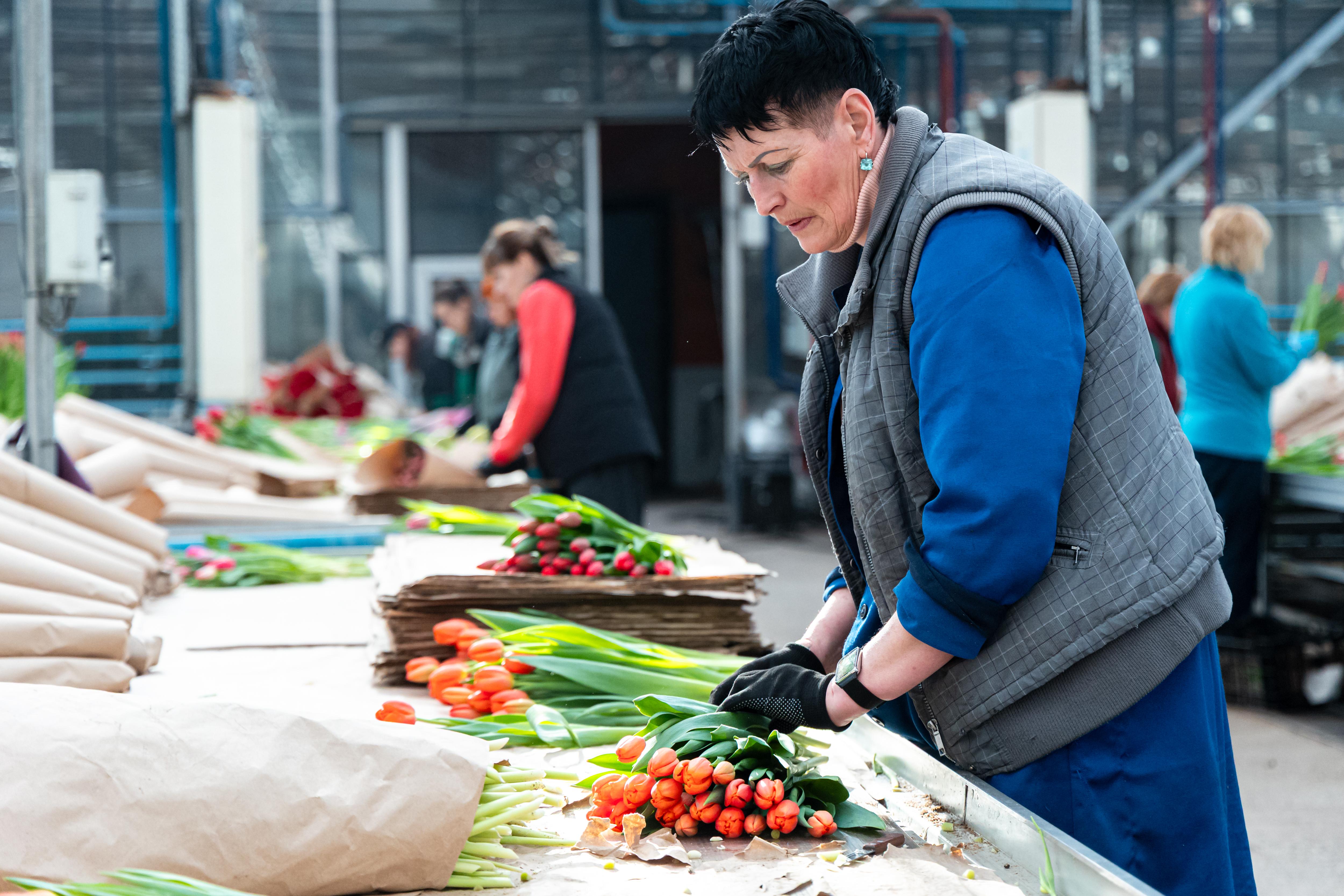 Работники собирают букеты