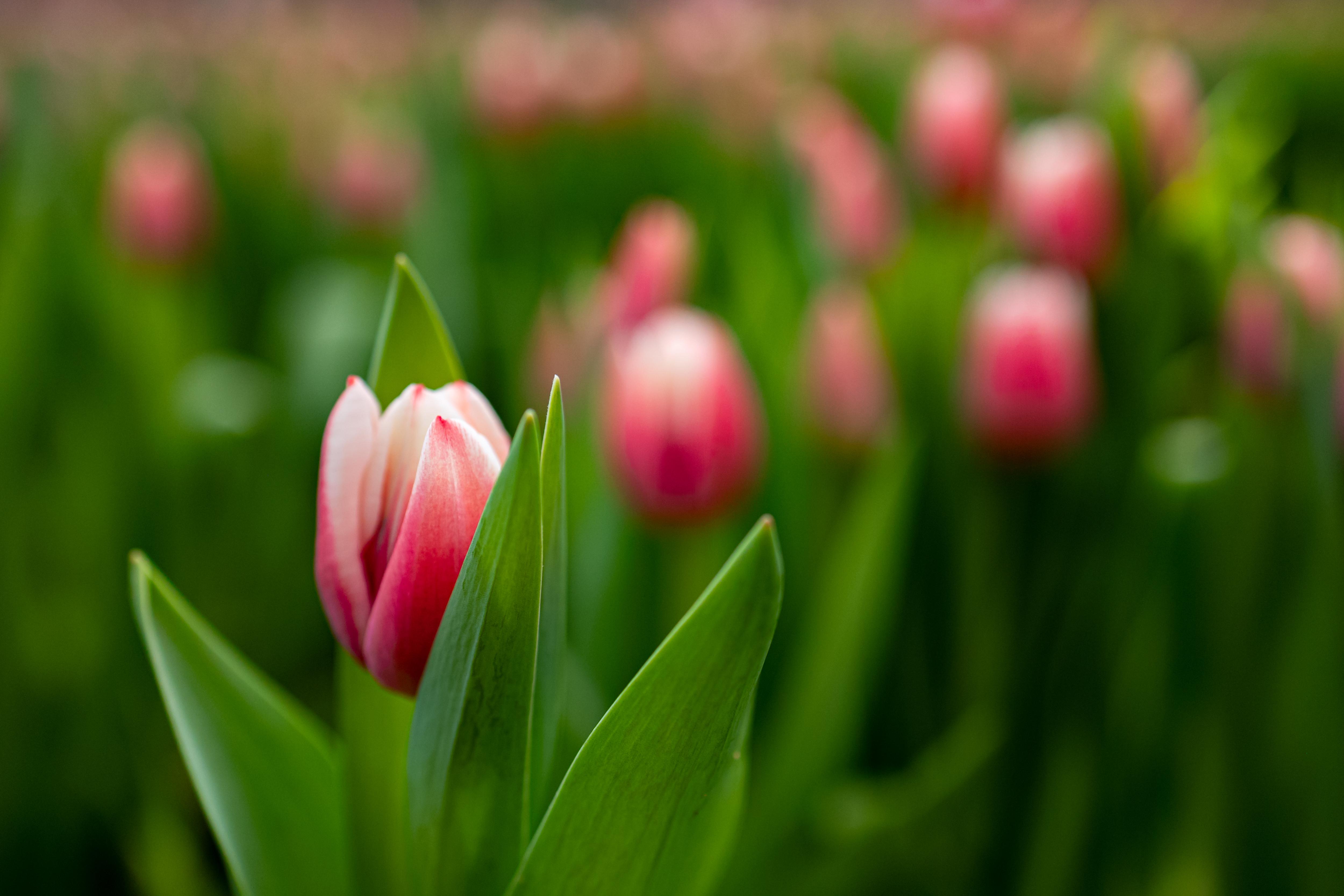 Розовые и белые тюльпаны