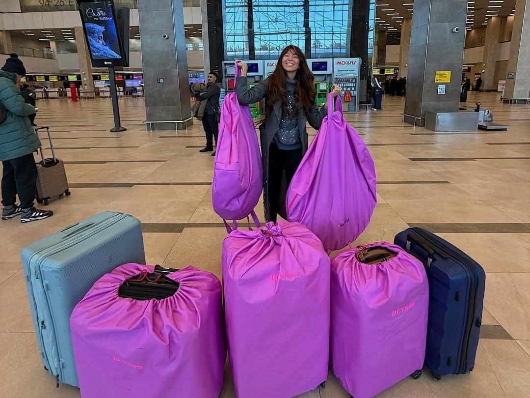 Для поездки дизайнер взяла пять чемоданов общим весом 100 килограммов, в которые упаковала 30 различных образов. 28 февраля выяснилось, что перевес багажа оценили в 200 тысяч рублей.